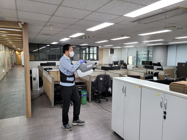 Äڷγª19 ¿¹¹æÀ» À§ÇÏ¿© ¸ÅÀÏ ¼Òµ¶ û¼Ò ¹× Àü Á÷¿ø ¸¶½ºÅ© Âø¿ëÇϰí ÀÖÀ¸¸ç,