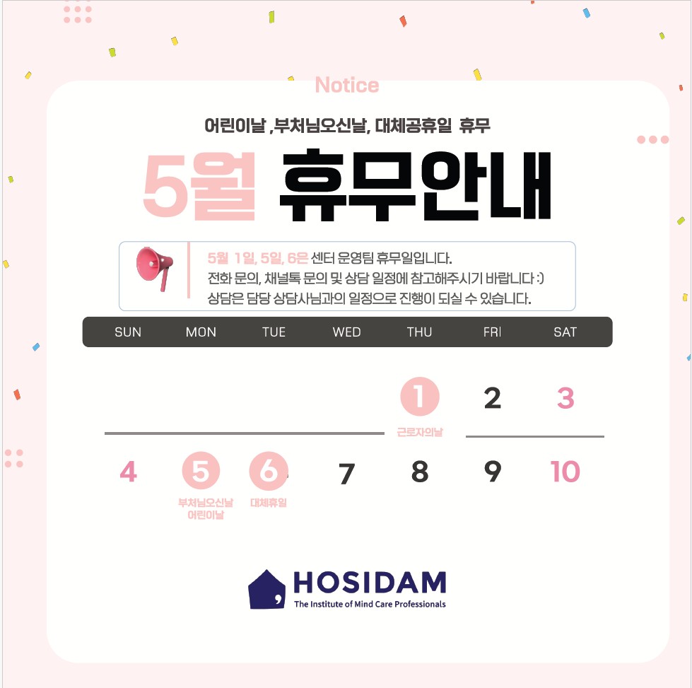 ¡ß 2025³â 5¿ù È£½Ã´ã½É¸®»ó´ã¼¾ÅÍ ÈÞ¹«¾È³»